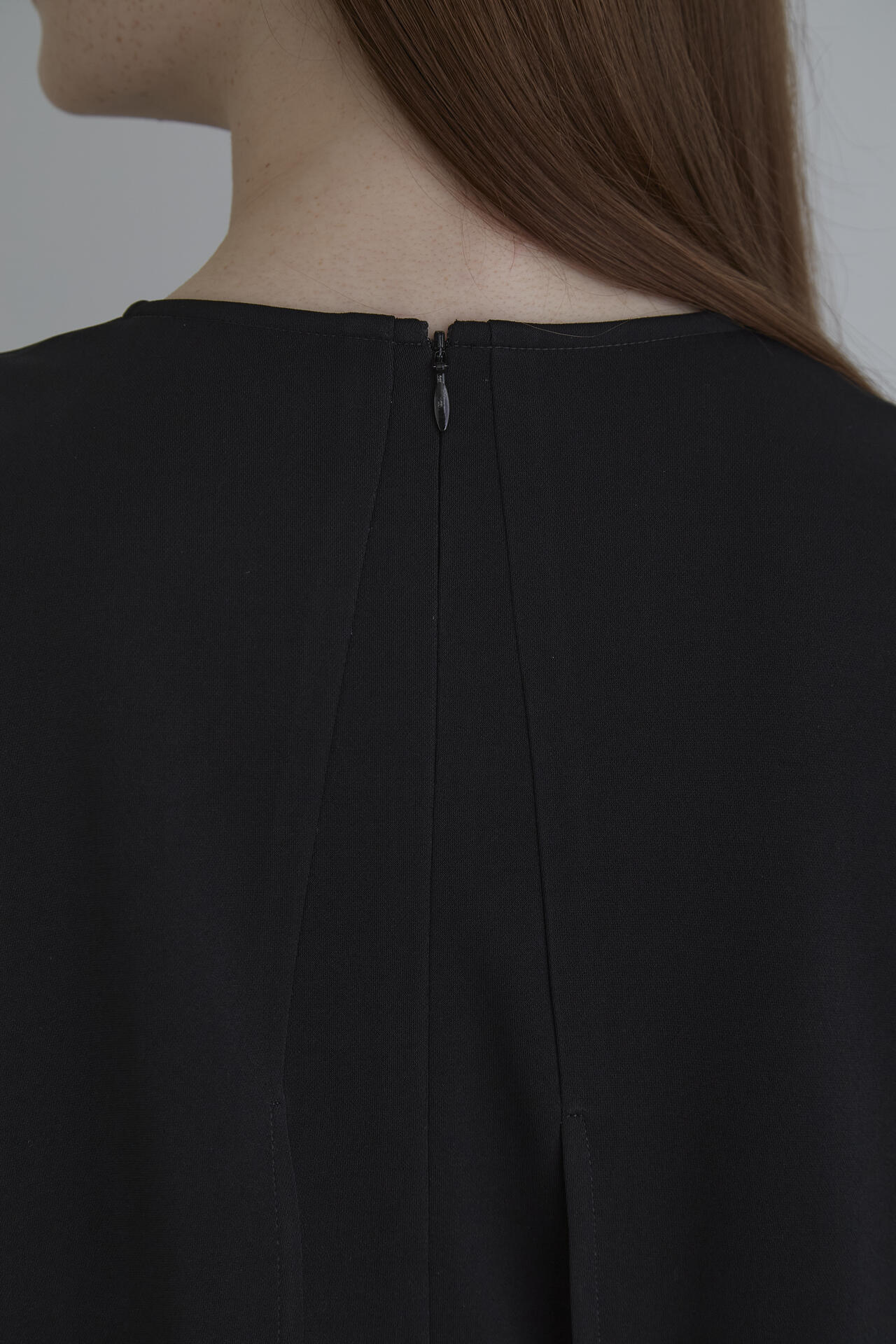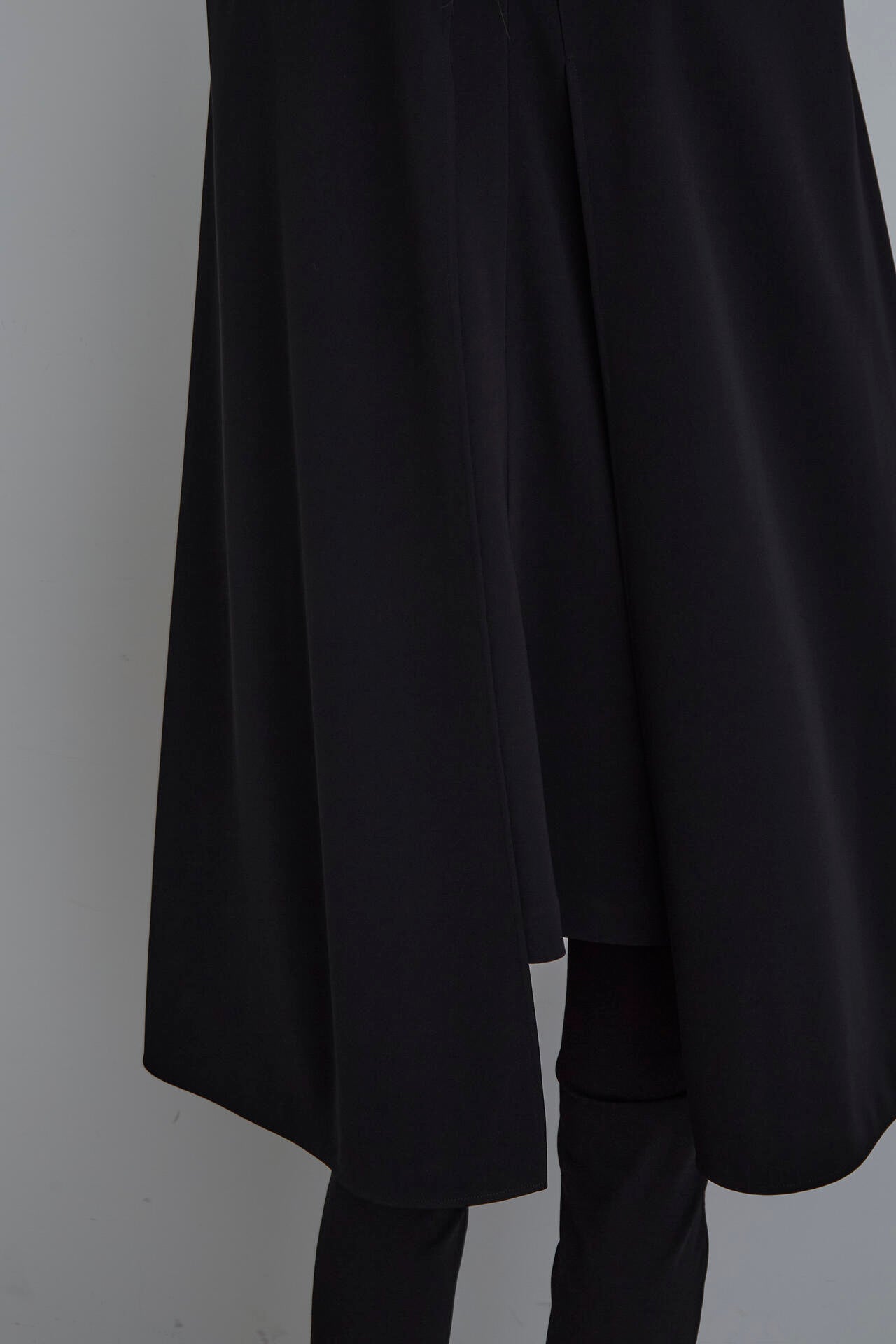 大胆なフレアシルエットは着る人を美しく見せ、素材の上品さを引き立たせています。