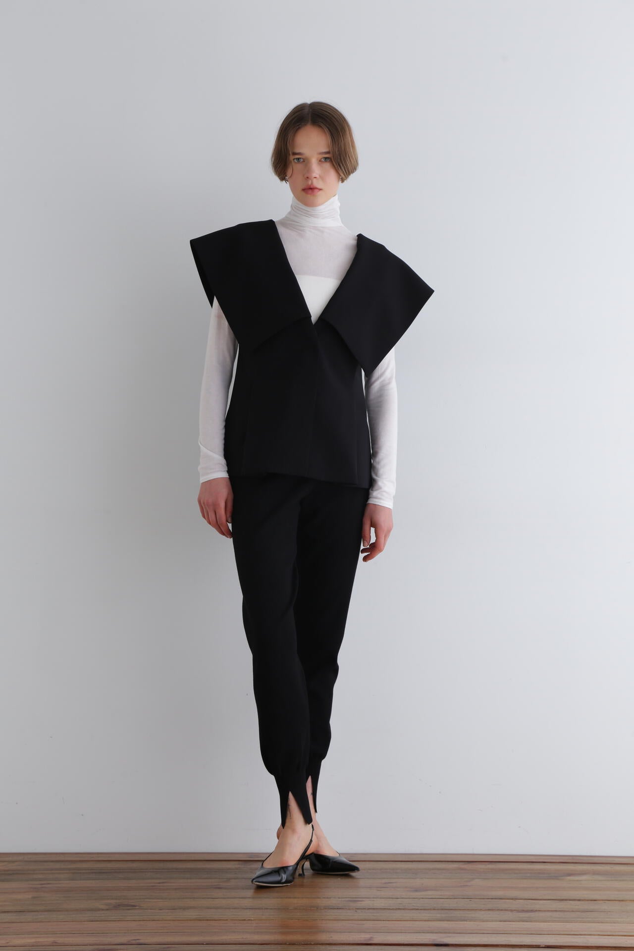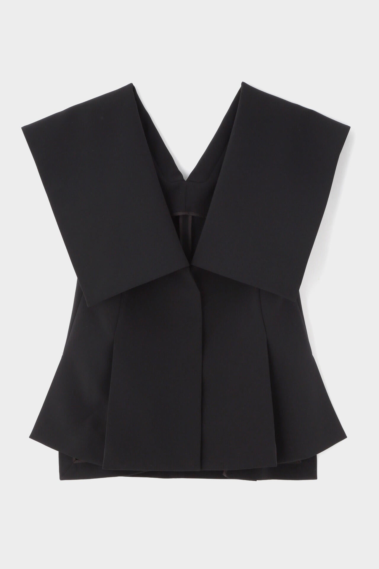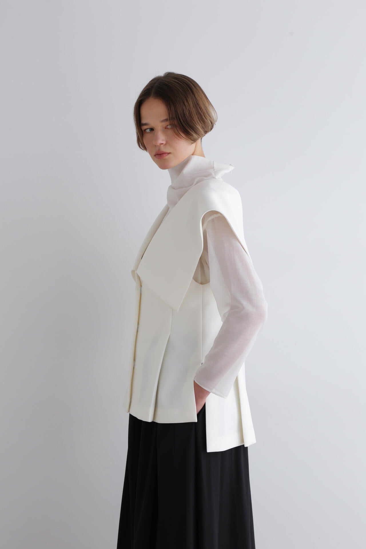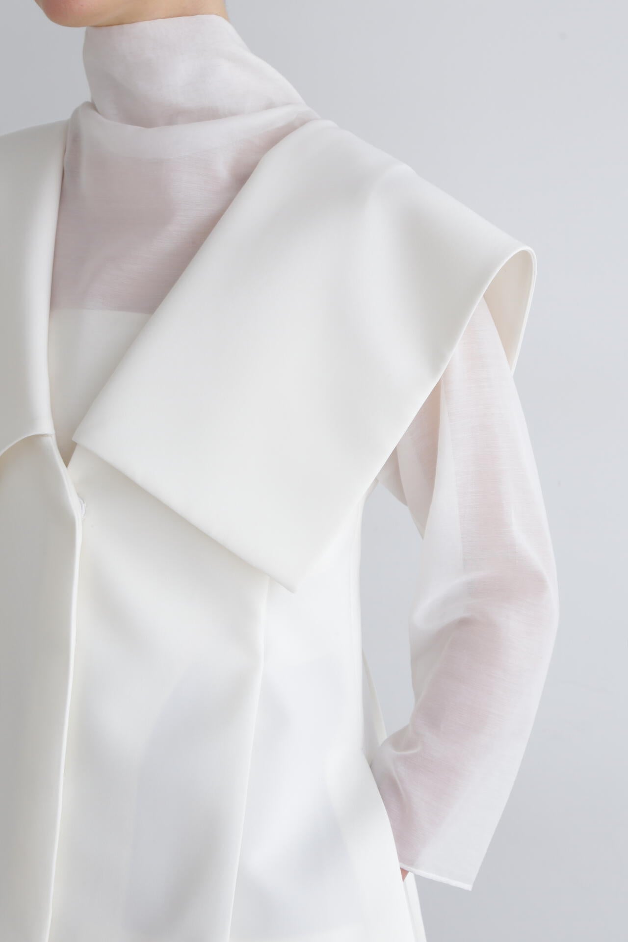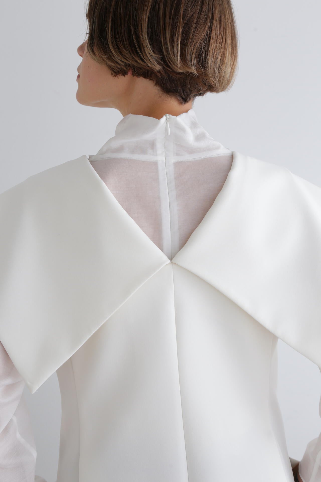 天巾が広く、抜け襟の様なビッグカラーはフェミニンな印象。