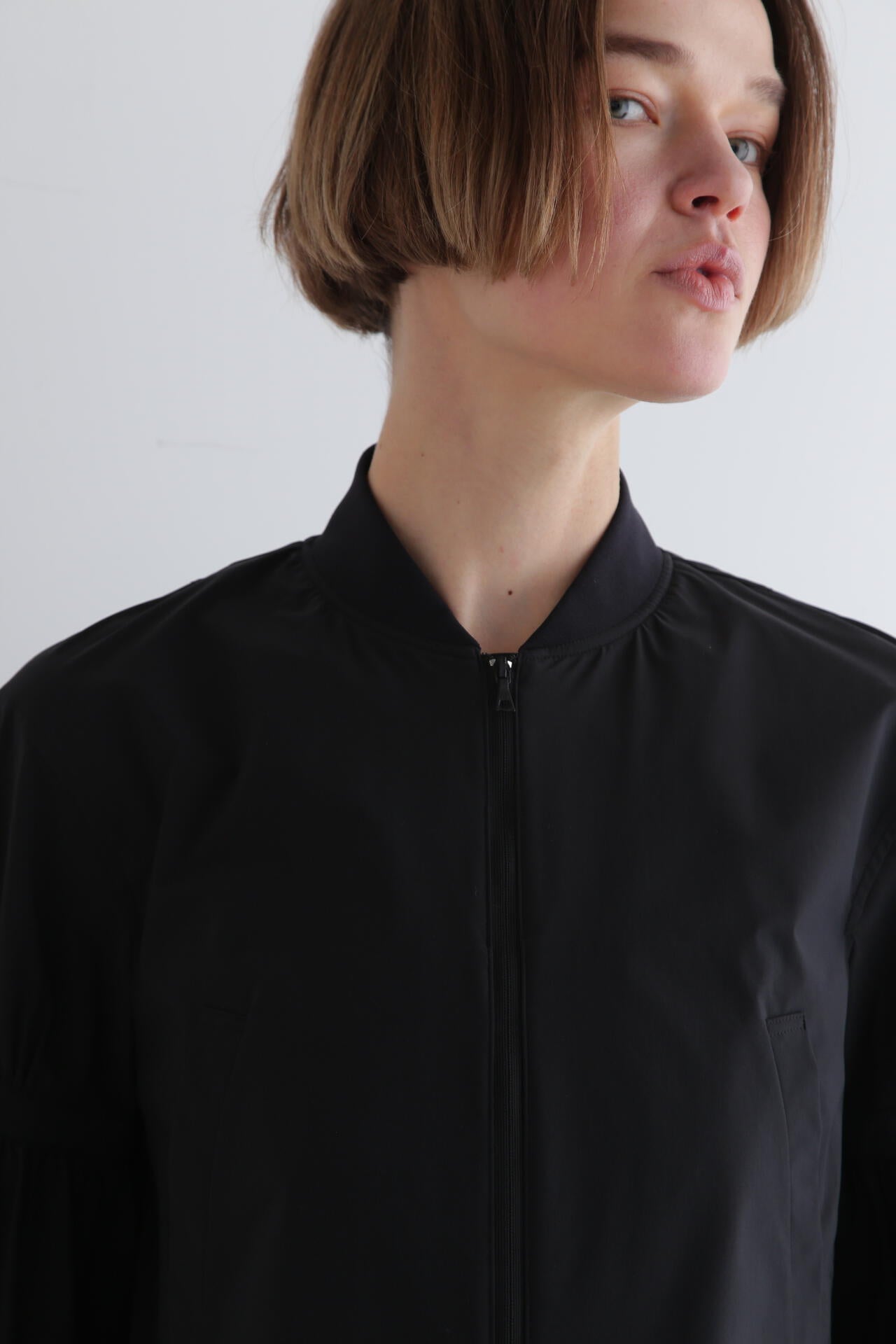 立体的なフォルムがポイントの、モードなシルエットに仕上げたブルゾン。