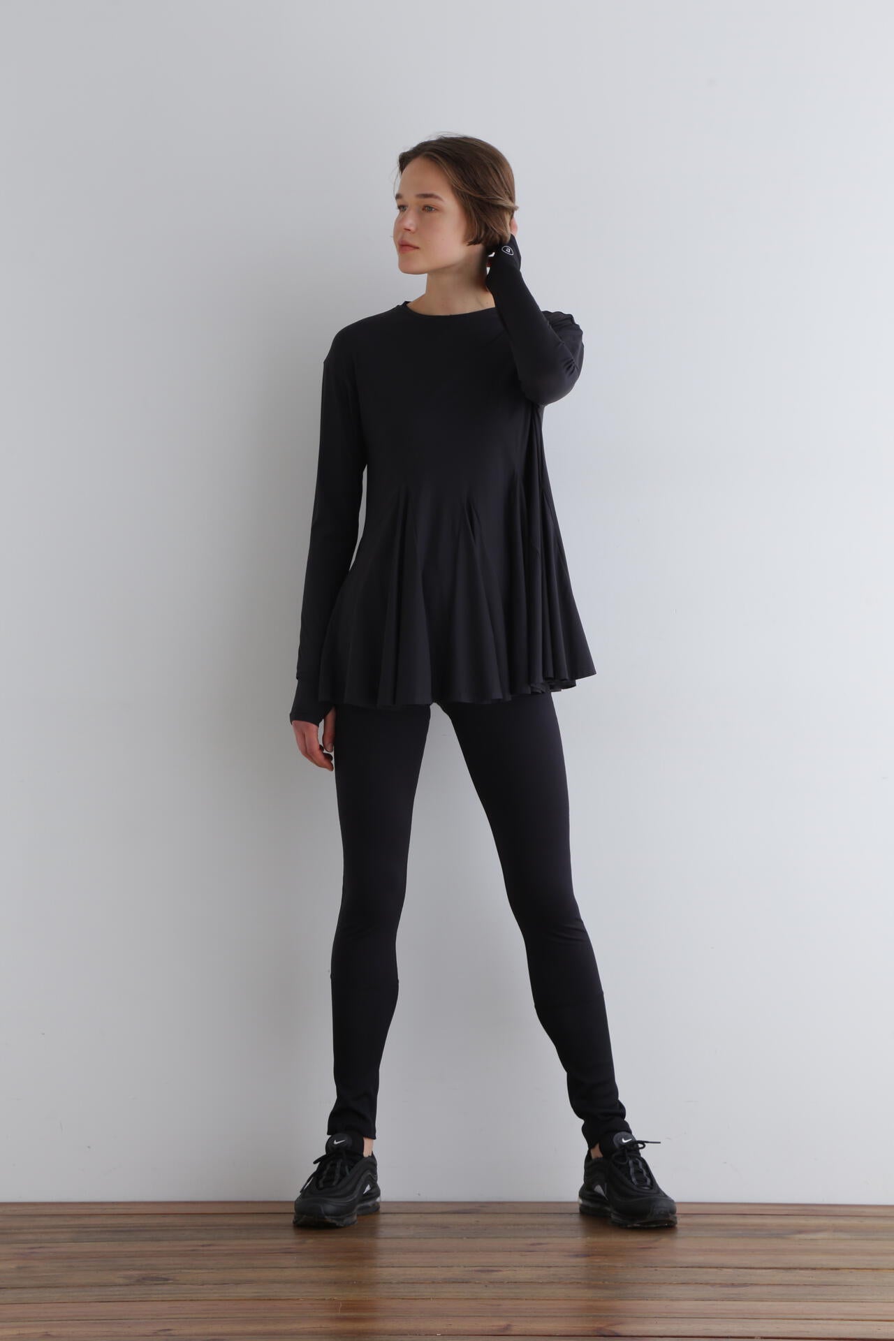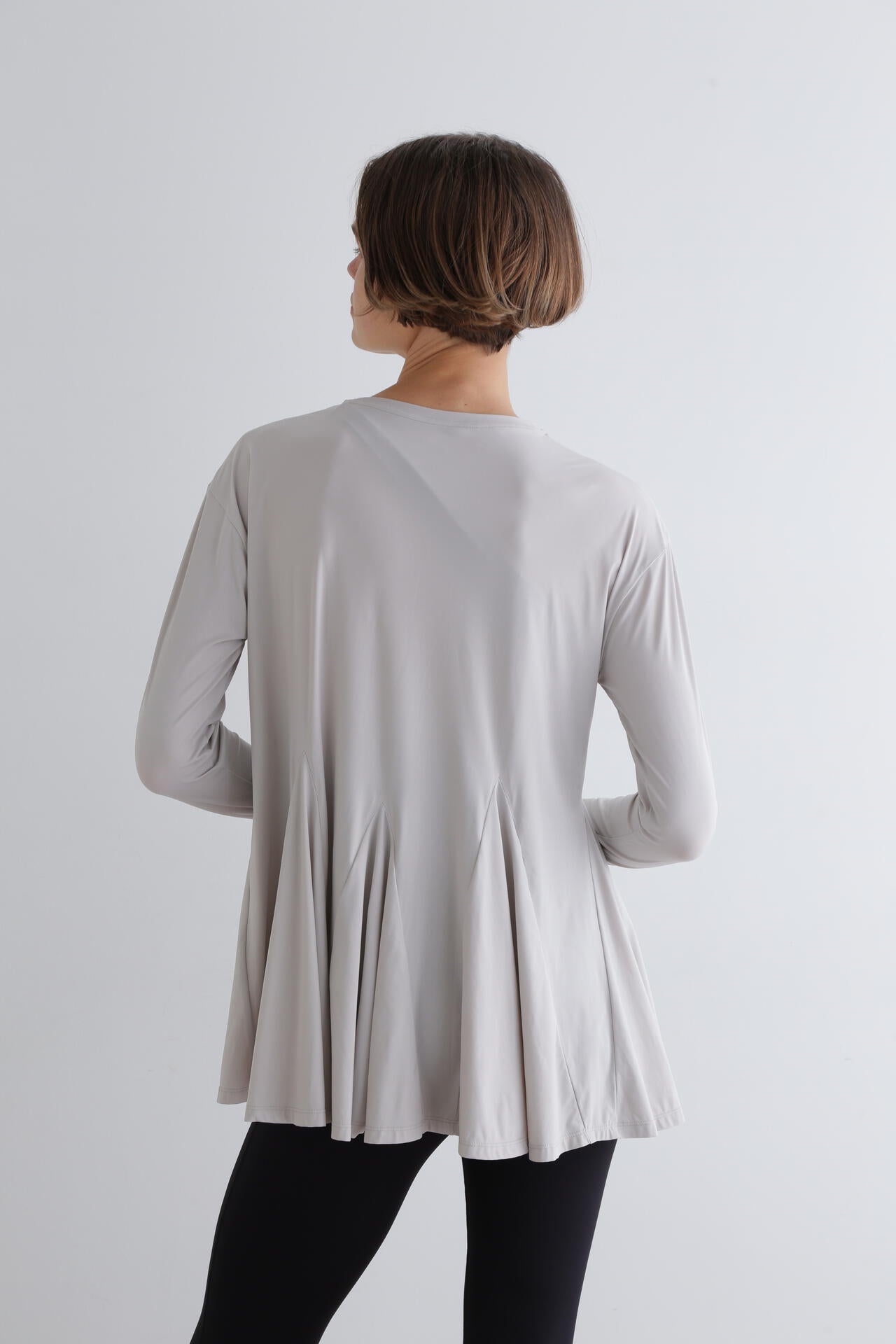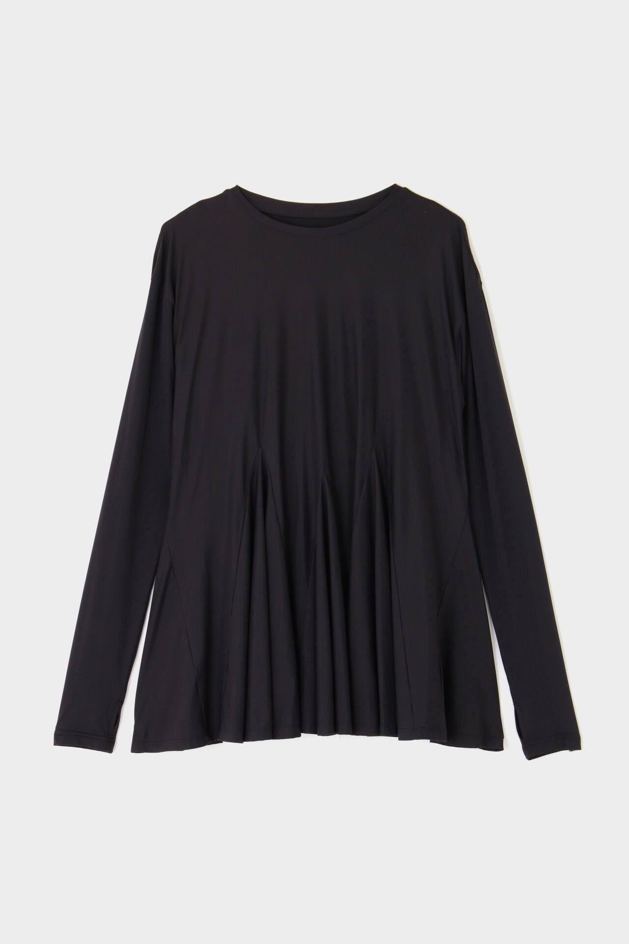 身頃はゆったりとしたシルエットですが、裾に重みを持たせることで、スタイルアップできる一枚です。