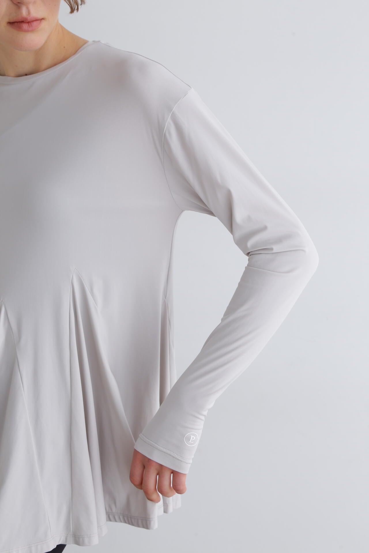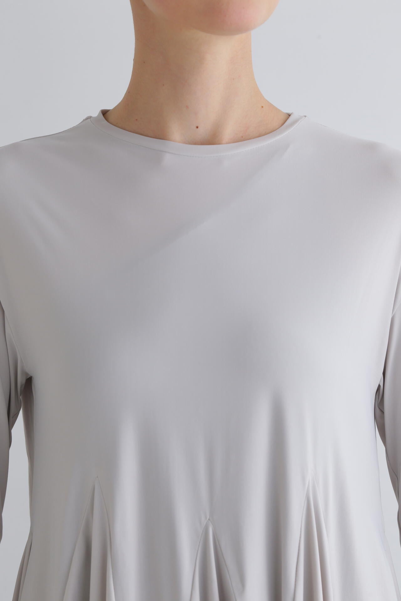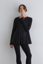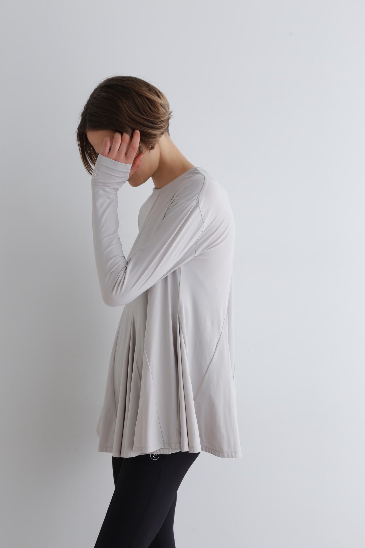 身頃はゆったりとしたシルエットですが、裾に重みを持たせることで、スタイルアップできる一枚です。