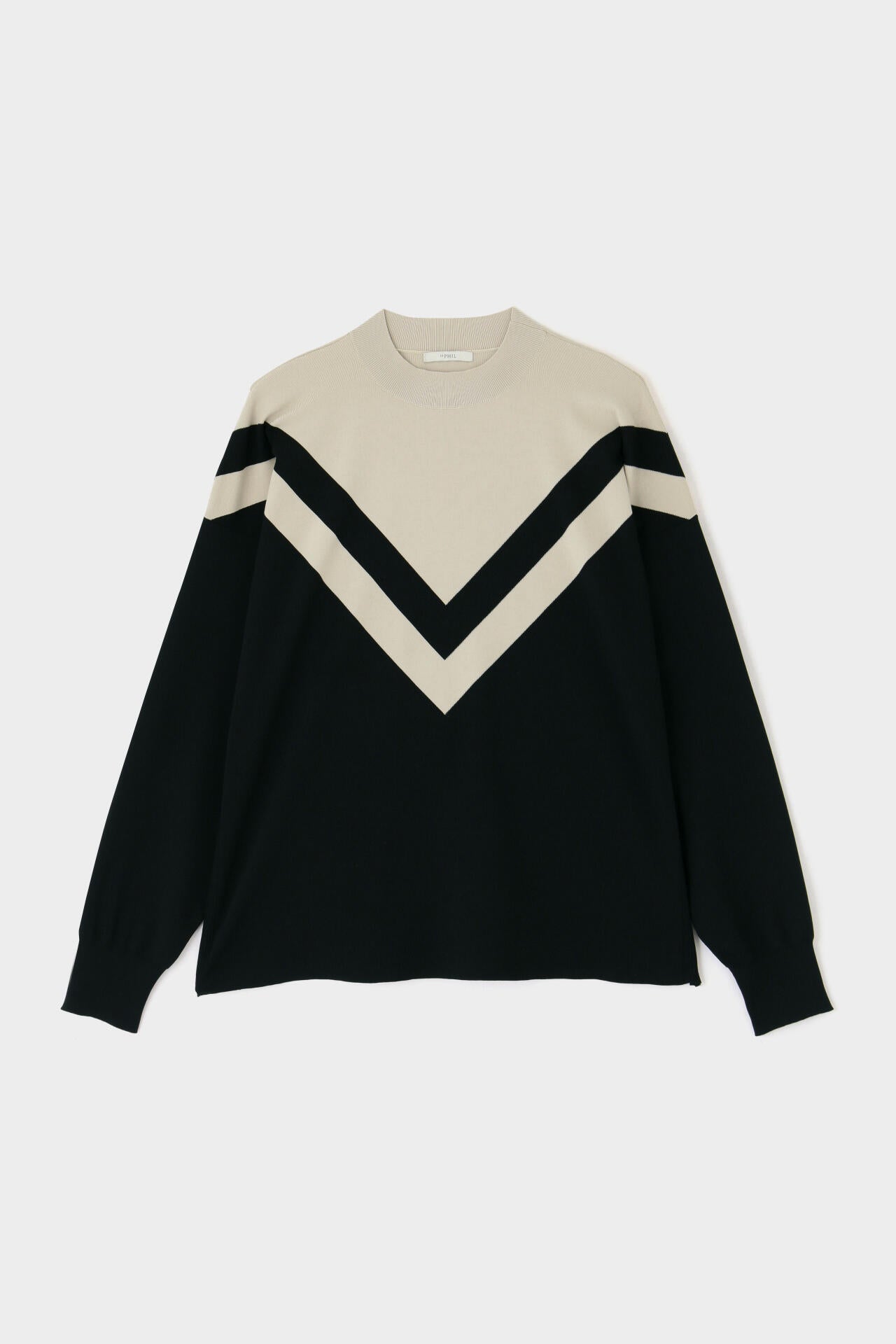 大胆なラインが特徴のドライタッチな総針編みのハイゲージニットです。