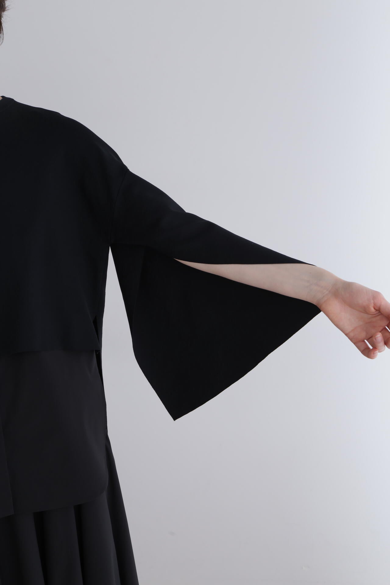 女性らしさと抜け感をポイントにしたスリットスリーブは手の所作に合わせ揺れる様も美しいデザイン。