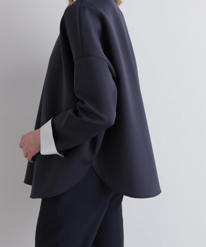 体が泳ぐような立体ドレープをきかせたサークル型のブラウス。