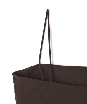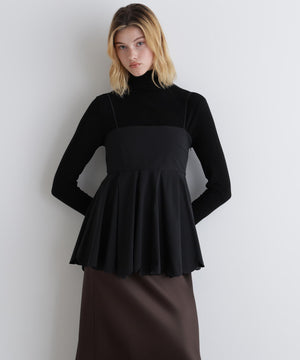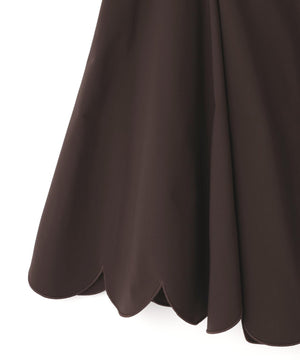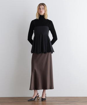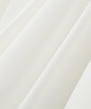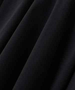 ソフトなストレッチ性を持つ「SOLOTEX」素材を使用し、コンパクトなトップとドラマティックな裾のボリュームで、モードなシルエットを構築。