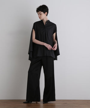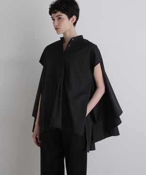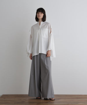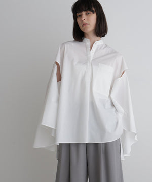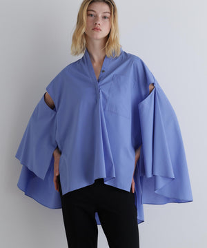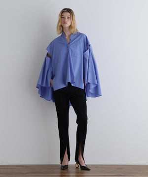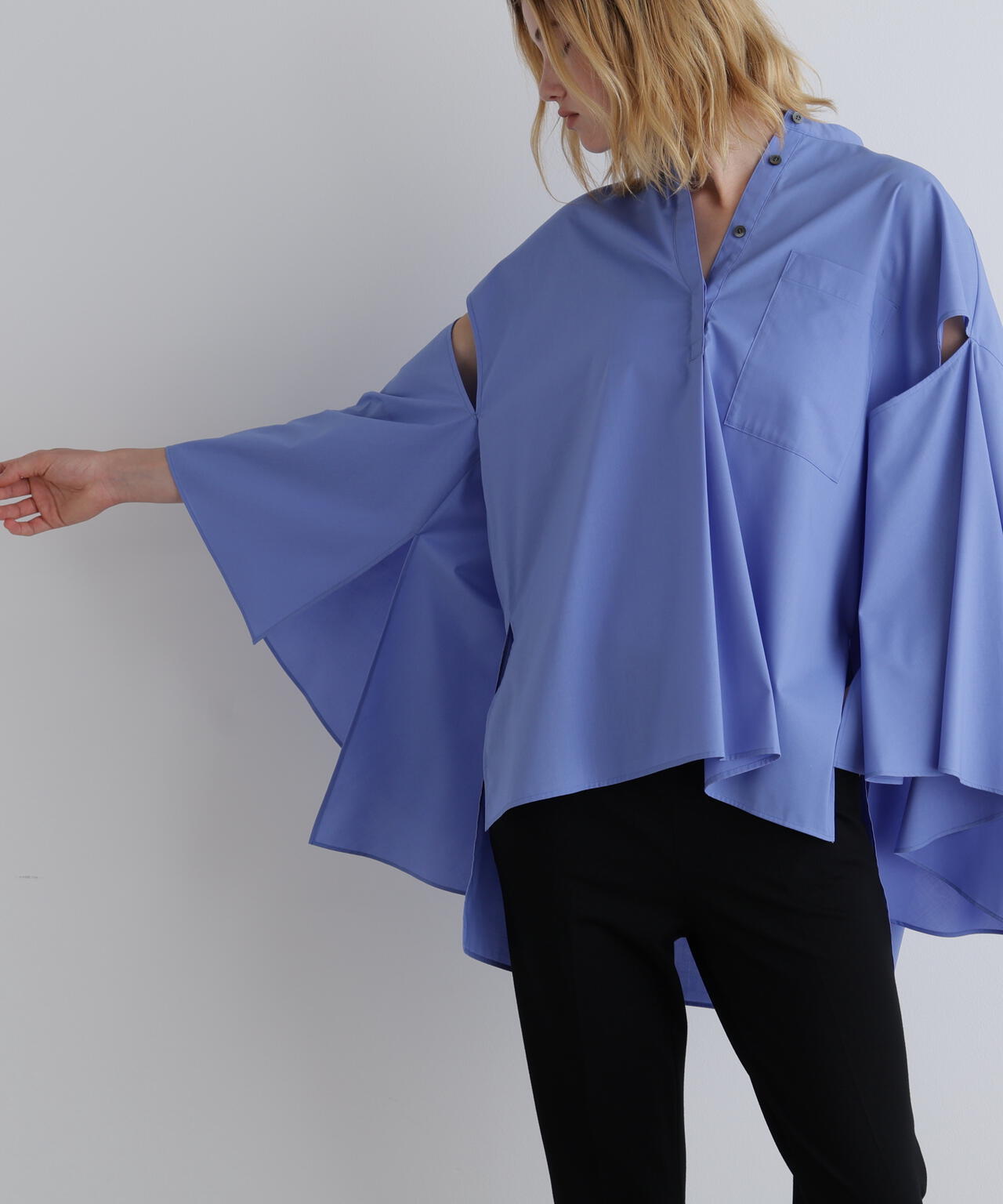 肩から袖にかけて施された深めのスリットは、動きに合わせて美しく表情を変え、インナーとのレイヤードスタイルにも最適です。