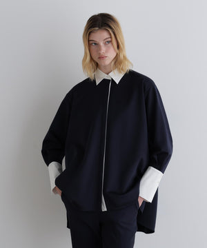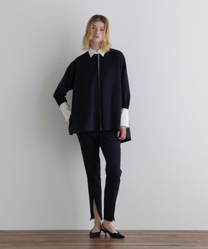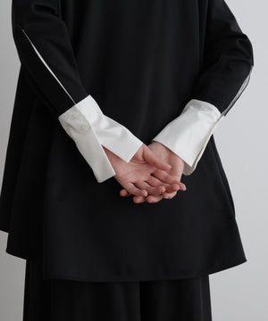 衿と袖口、前立て部分には配色を効かせ、全体を引き締めるアクセントに。シンプルなボトムに合わせるだけで、主役級の着映えが叶うアイテムです。