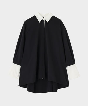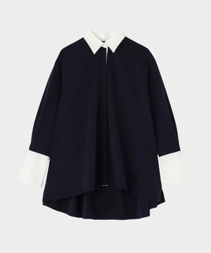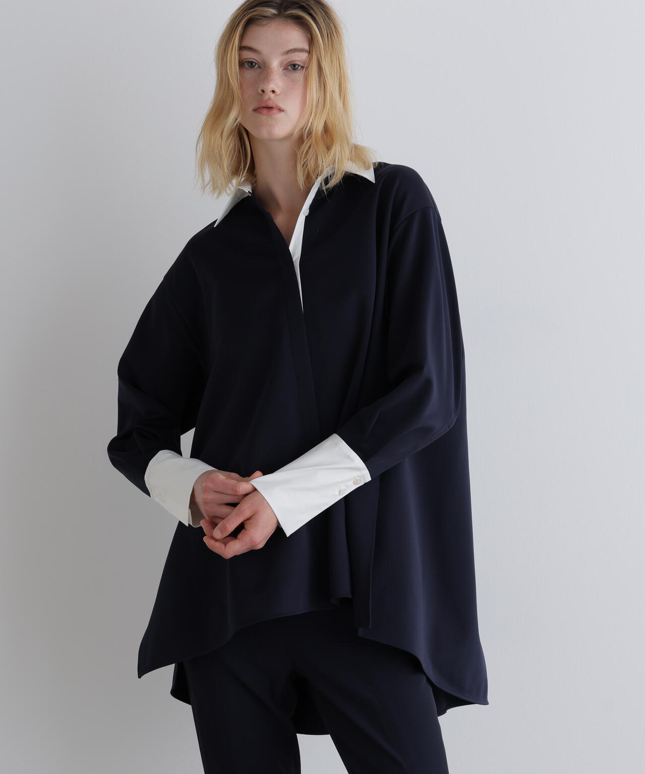 まるで上品なラガーシャツを思わせるような新鮮なムードを持ちつつ、シルエットはテントラインのフレアシルエット。