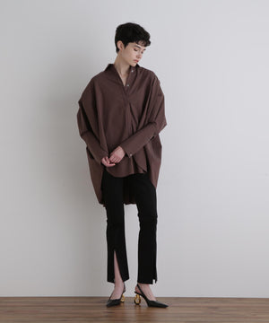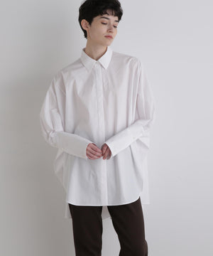 たっぷりとした分量感で仕立てた、構築的なシルエットが魅力のオーバーサイズシャツ。