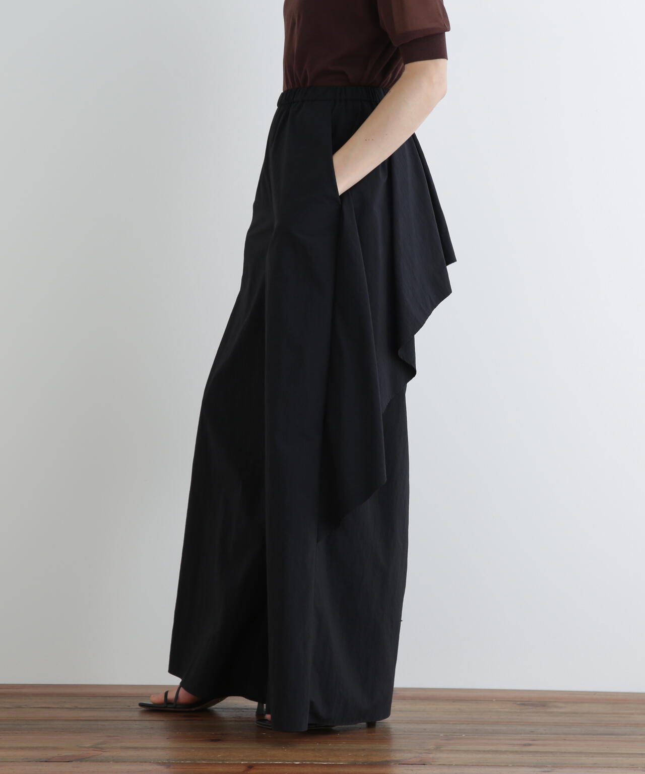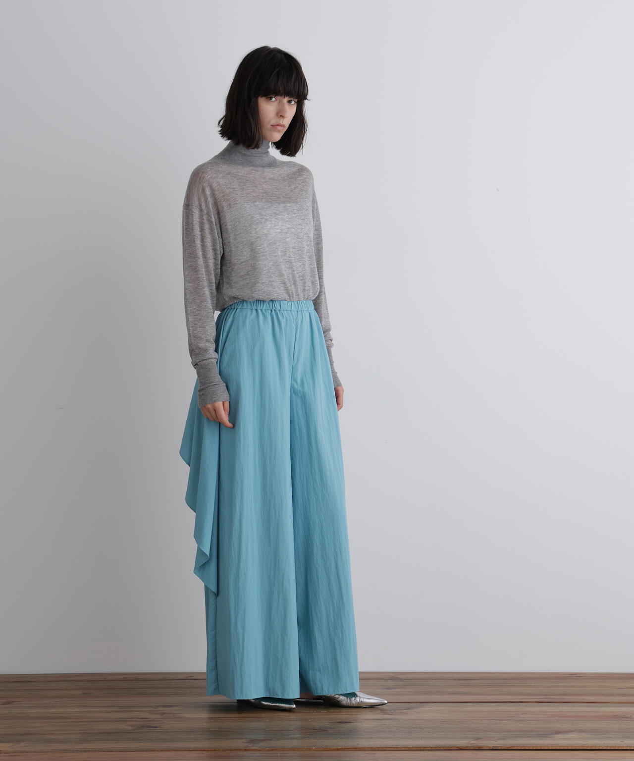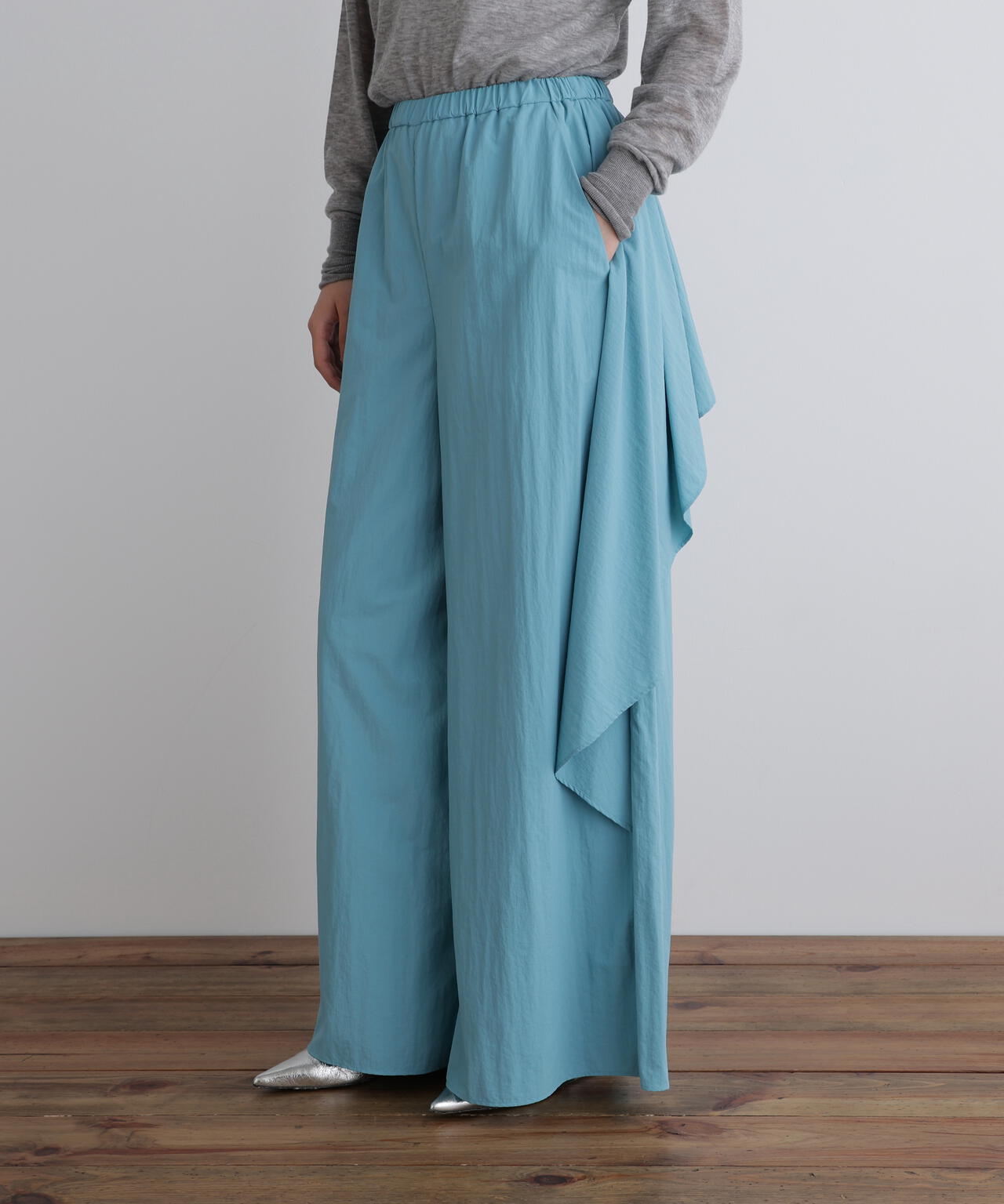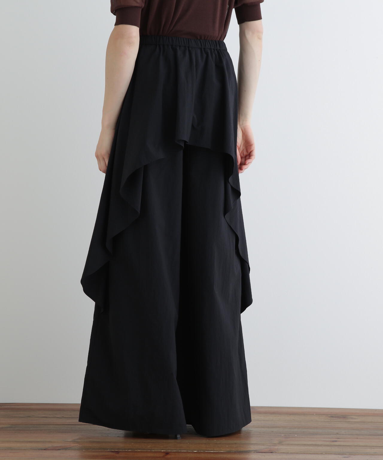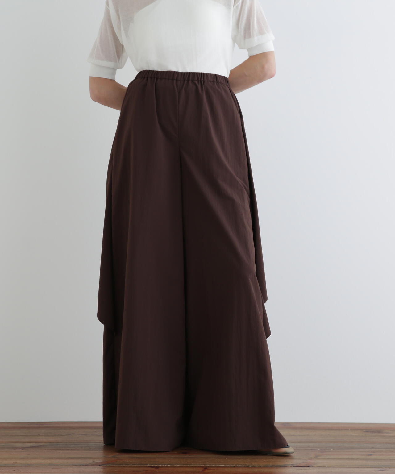 まるでスカートを履いているように見えるほどのたっぷりとした分量がポイント。分量が多くとも歩きやすいよう調整しています。