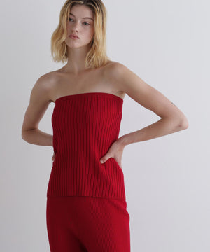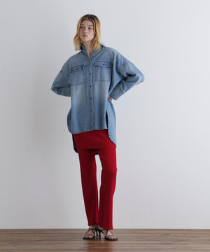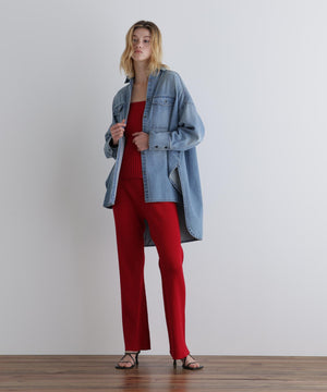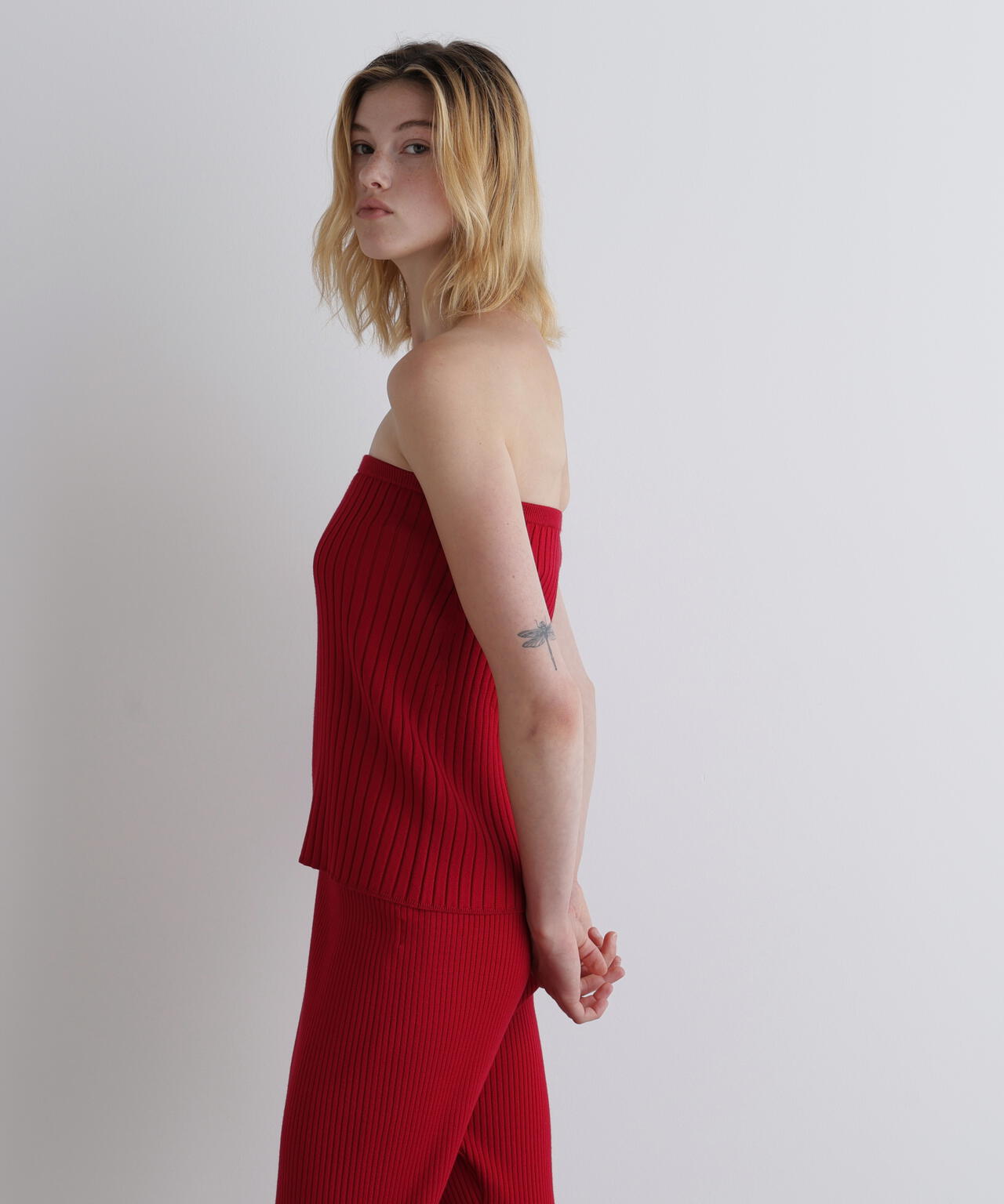 柔らかなリブニットを使用した着こなしの幅が広がるスカートパンツ。