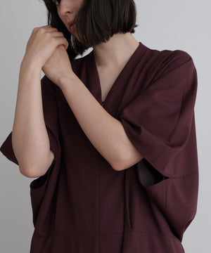 程よく深めのネックデザインは、デコルテを美しく見せ、女性らしい抜け感を演出します。