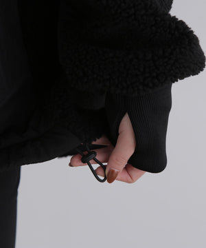 (表生地)ポリエステル 84% アクリル 16%(別布部分)ナイロン 100%(リブ部分)ポリエステル 95% ナイロン 4% ポリウレタン 1%(裏生地)ポリエステル 100%