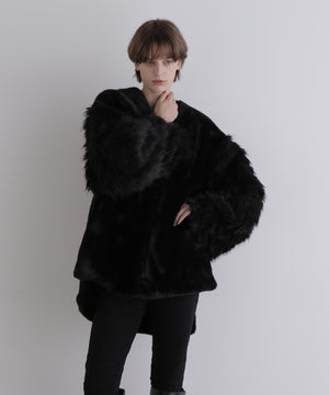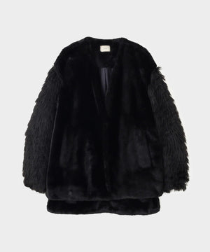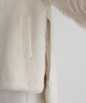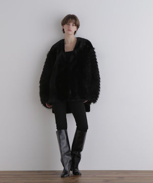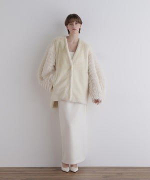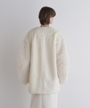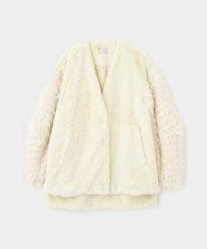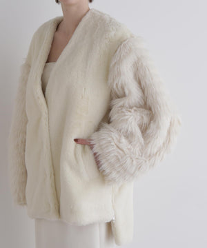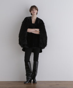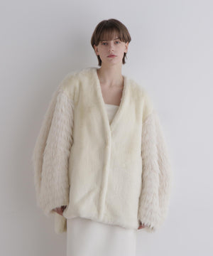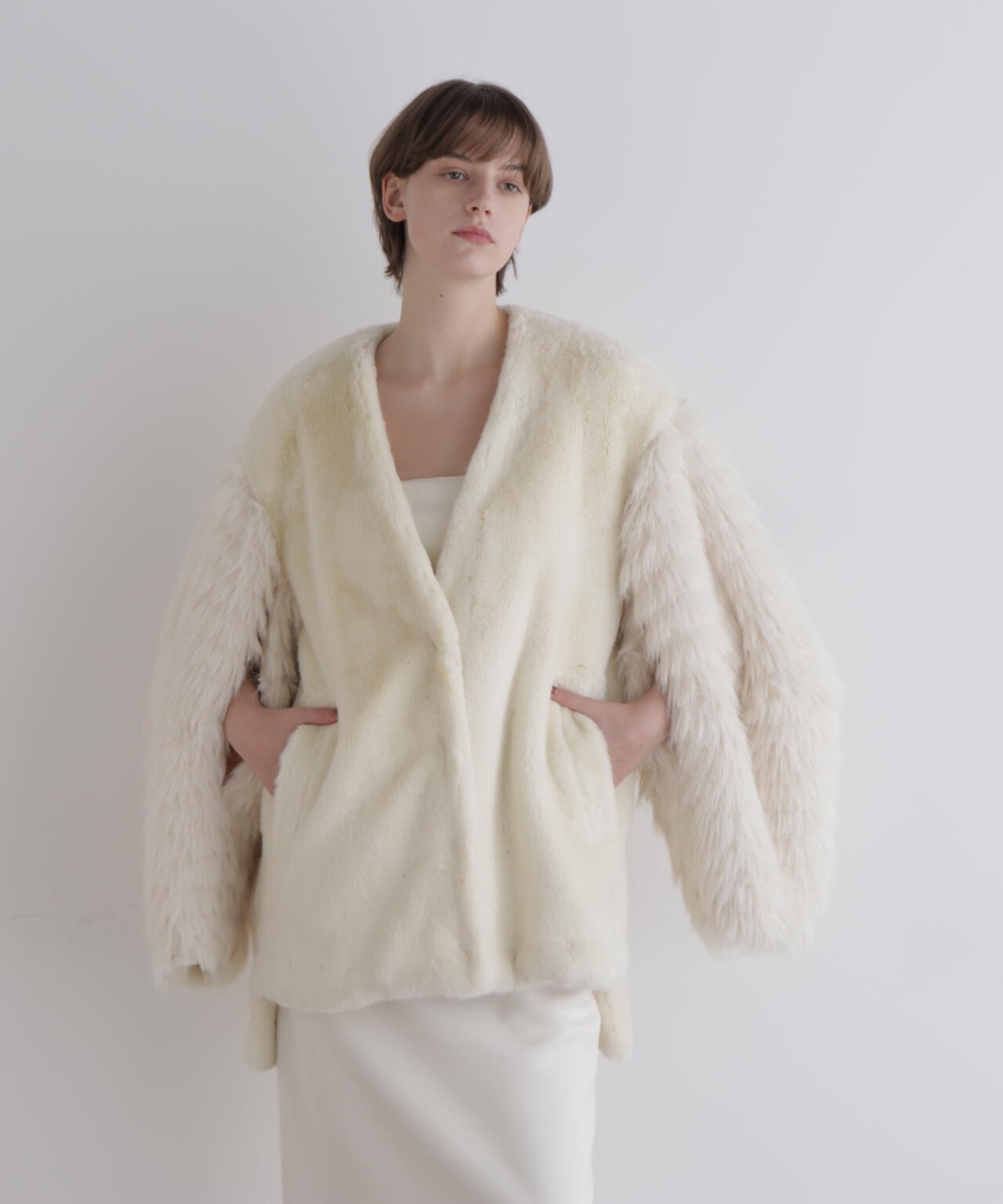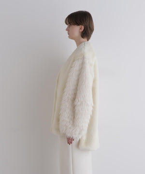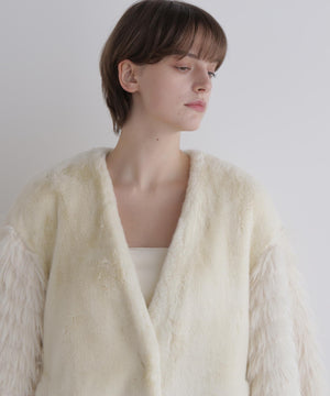 表情の違う2種類のファーを組み合わせたカーディガンのようなコートです。