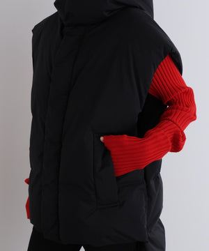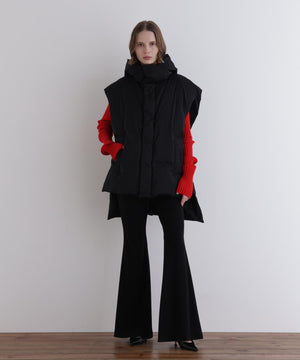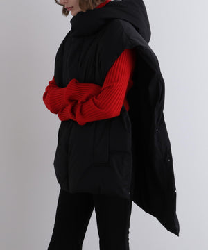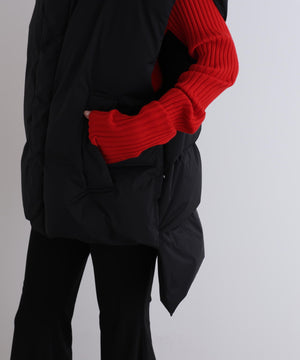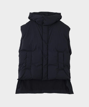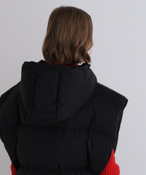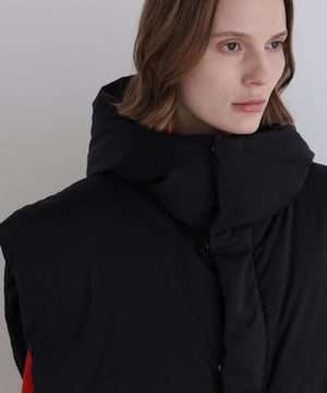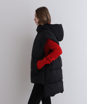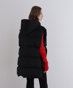スリーブレスで抜け感のあるバランスを構築しながら、洗練されたシルエットに仕上げたダウンベスト。