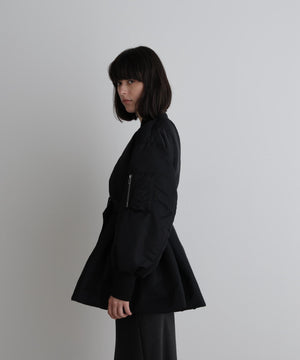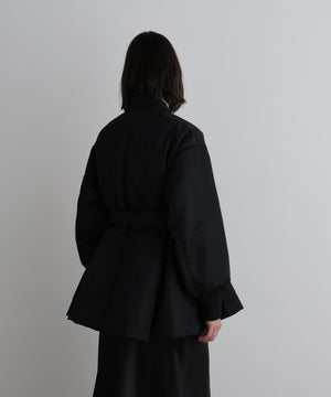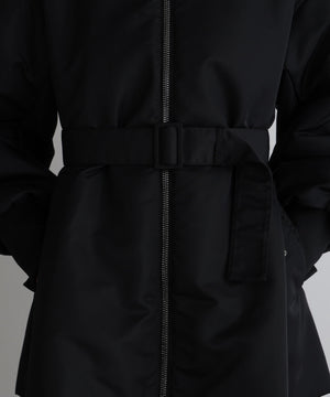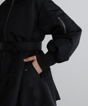 冬のあらゆるシーンを快適かつエレガントに彩る新型アウターが登場。オーセンティックなMA-1のメンズライクなディテールに、フェミニンなAラインフレアシルエットを融合させた、絶妙なバランス感が魅力の一着。見た目の美しさだけでなく、真冬の寒さにも対応する機能性も追求。中綿には、高い保温性と軽やかさを兼ね備えた高機能中綿を封入。さらに裏地には、遠赤外線効果で体を芯から温める蓄熱・保温素材を採用し、まるで陽だまりのような暖かさをキープします。ボリュームのある袖や、アクセントとなるシガレットポケット、そしてウエストマークでシルエットの変化を楽しめる共布ベルトなど、細部のディテールにもこだわりが光ります。襟元と袖口のリブが風の侵入を防ぎ、暖かさをしっかりと閉じ込めます。ベルトでウエストをシェイプすれば、より女性らしいメリハリのあるシルエットが完成します。デザイン性と機能性を高次元で融合させた、まさに才色兼備な一着です。
