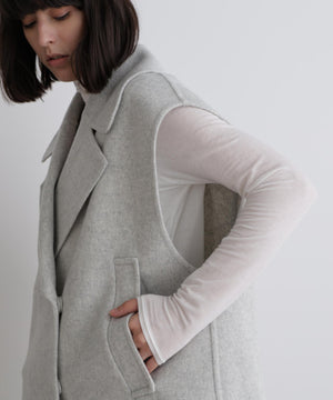 大胆なオーバーサイズシルエットが今季らしい抜け感を演出するジレ。