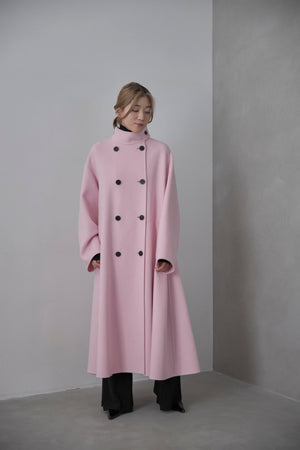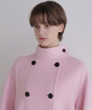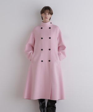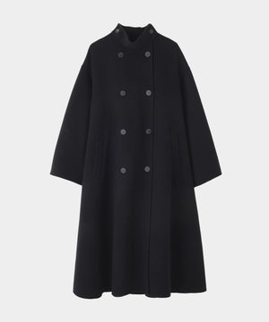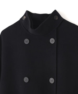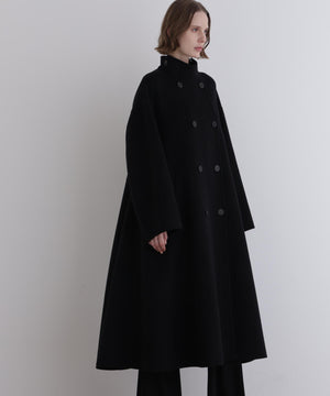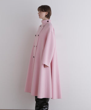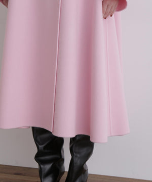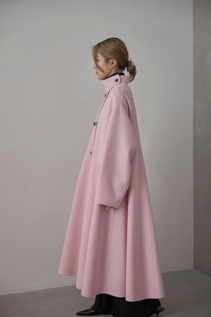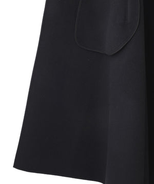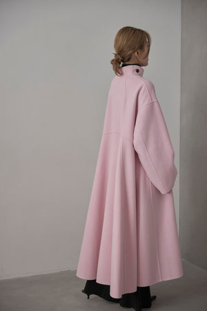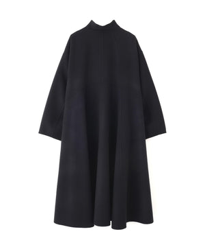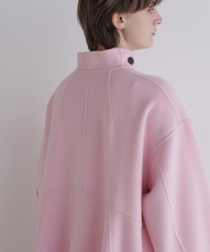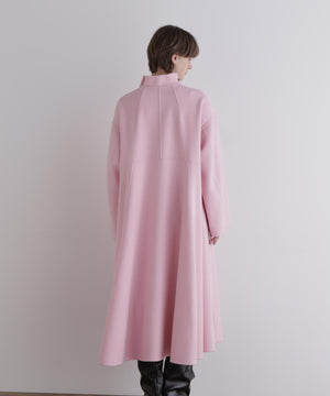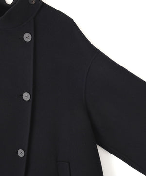スタンドカラーで前身ごろはすっきりとマスキュリンに作っていますが、後ろ身頃は切り替えてフレアーを出したドレスのようなシルエットに。