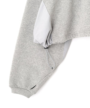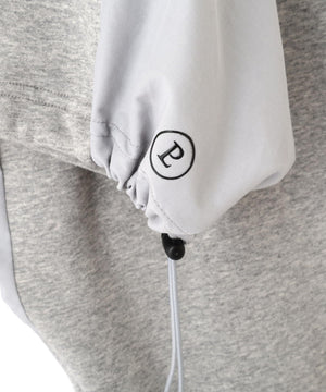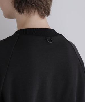 身頃と袖部分に異素材の切り替え(コンビネーション)を施し、立体感と動きのあるデザインに仕上げています。