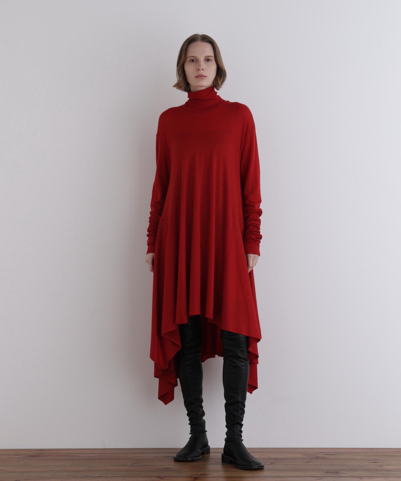 ニットのような風合いのウールジャージを使用したミニワンピースです。