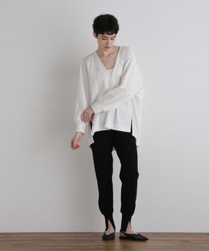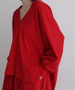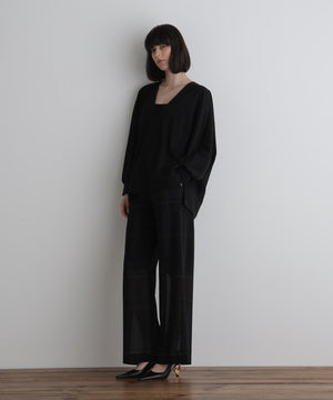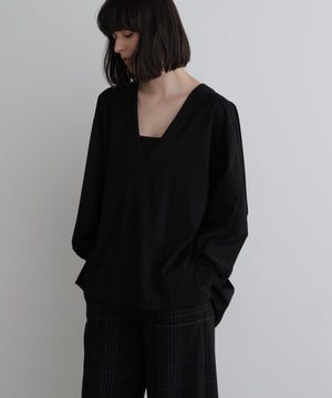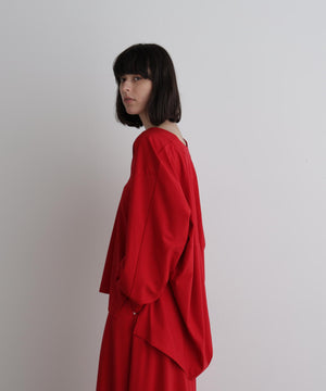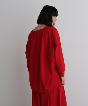 軽やかなポンチ素材を使用し、ミニマルなデザインに計算されたバックスタイルのふんわりとした立体感のあるフォルムが目を惹くプルオーバー。