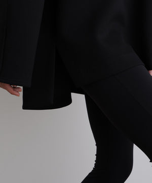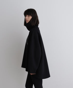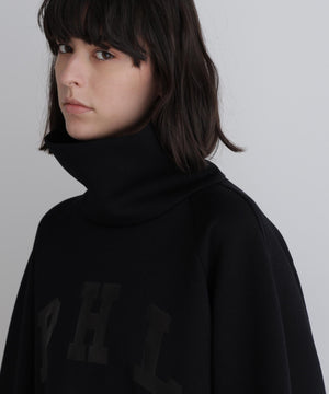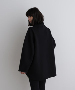 ゆったりとしたオーバーサイズシルエットに、高めのネックラインが顔まわりをシャープに演出。