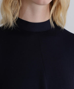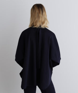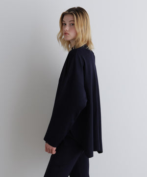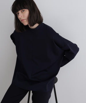 マットで上品なテクスチャーのポリエステル糸を使用し、リラックス感のあるシルエットに仕上げたニットトップ。