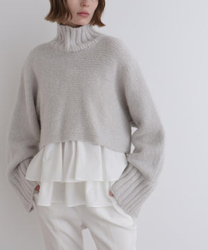 上質で少しクラフト感のあるスペシャルな素材を使用したタートルネックショートプルオーバーです。