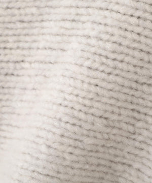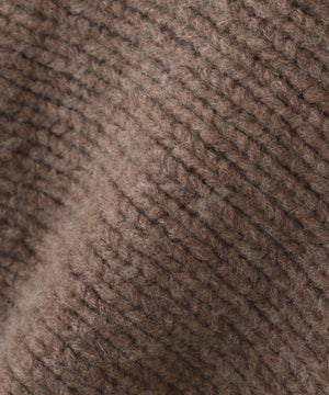 メリノウールとカシミアをブレンドしナイロンで甘撚りにしたロービング糸の素材です。