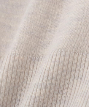 SOLOBLE FIBREとウールの混紡糸。水溶性ビニロン同様に溶かして軽く、やわらかい風合いになる素材です。肌当たりの良さが特徴的です。