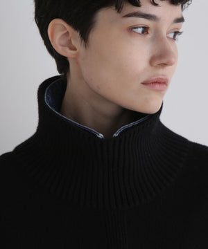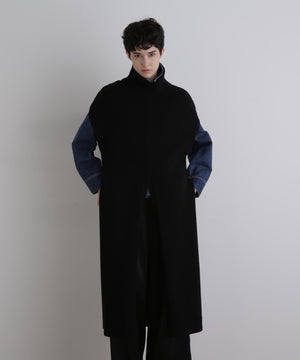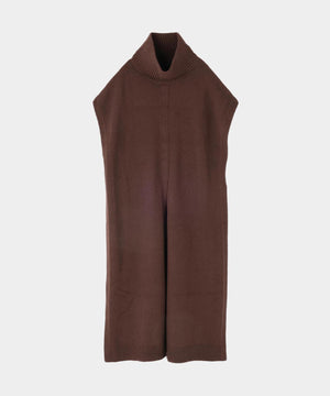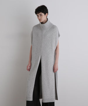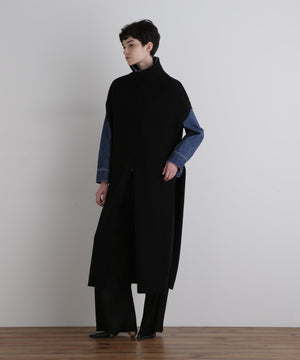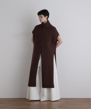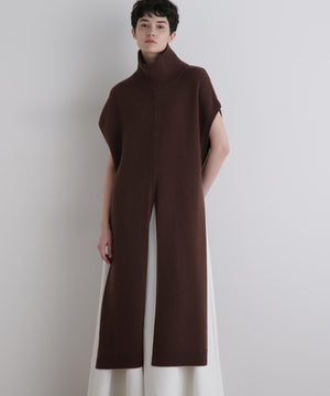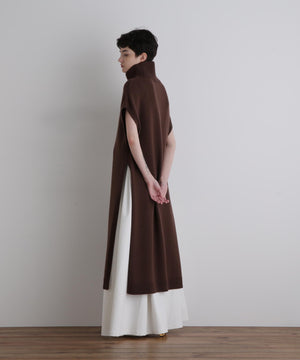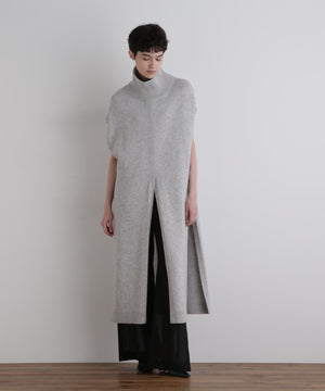 ウール100%の程よく目の詰まった重厚感のある編地でマキシレングスのジレトップスをお作りしました。