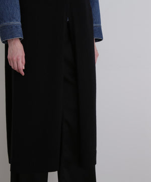 大胆な長めのレングスと、フロントスリットがモードで大人の女性にぴったりなエフォートレスなデザインです。