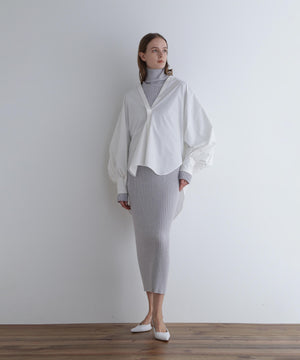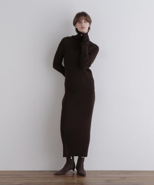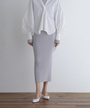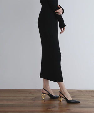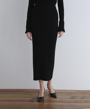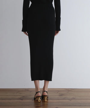 体のラインをきれいに見せてくれる絶妙なシルエットが魅力のリブニットスカートです。