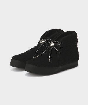 ベルベット、フェルト、ゴムの端切れを再利用し、ジュエルトーンやスエード、複雑な装飾を施したユニークなデザインが特徴。
