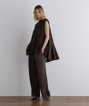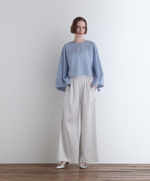 シンプル&モダンなワイドサテンパンツ。