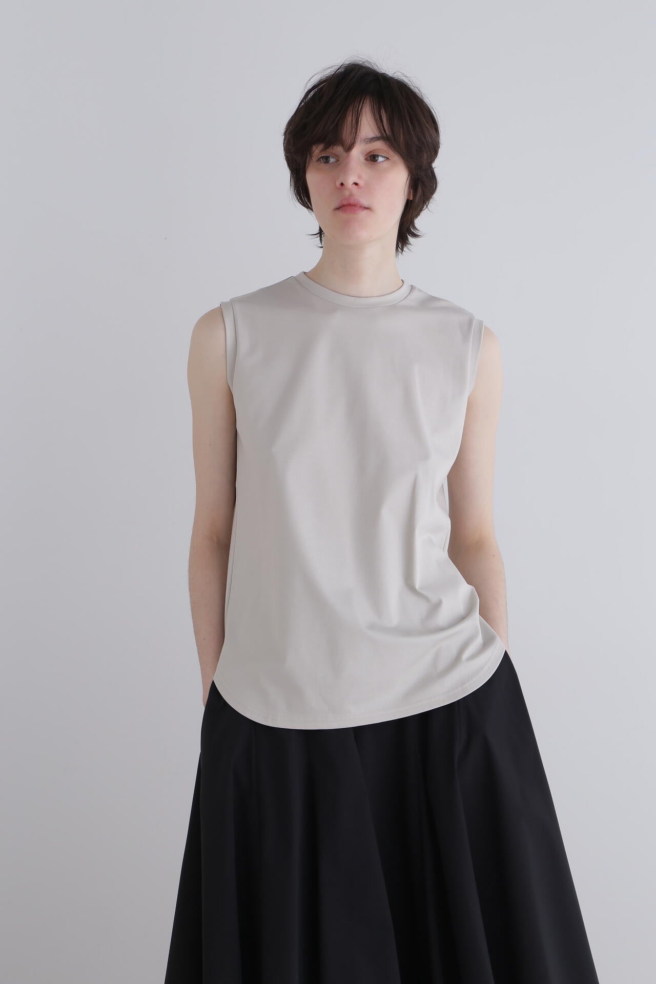 普段使いにぴったりのベーシックノースリーブT。