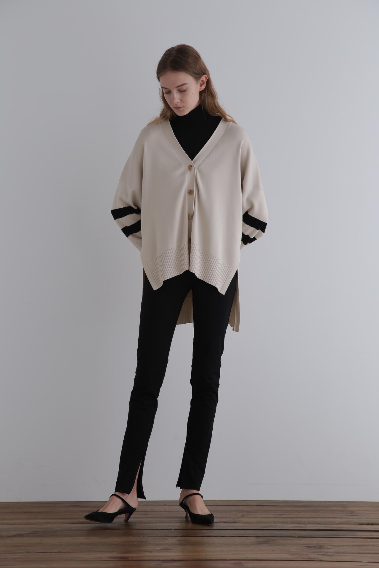 ゆったりとしたサイズ感で、合わせるものを選ばない着回し力抜群のベーシックなVネックカーディガン。