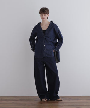 ※インディゴデニムは色落しますので白いものとの着用を避け、雨や汗などで濡れた状態で擦られたりしないようご注意ください。