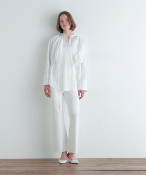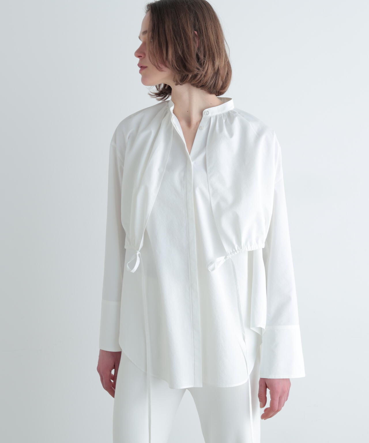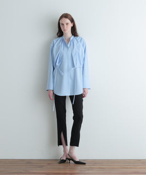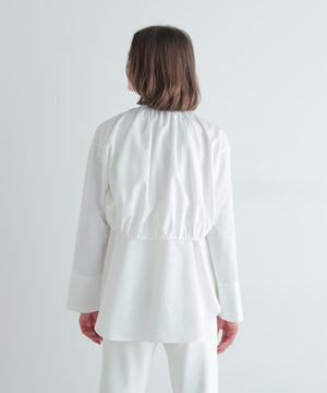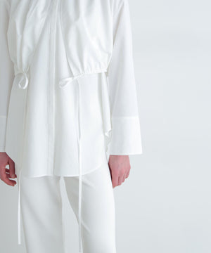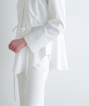 ショートトップスの裾はドローイングでギャザー分量を調整できます。