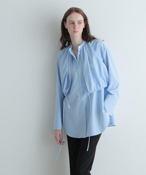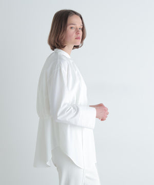 まるでショートブラウスとロングシャツを重ね着したようなデザインのブラウスです。