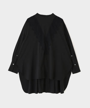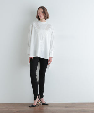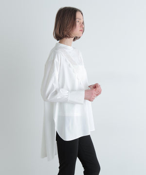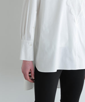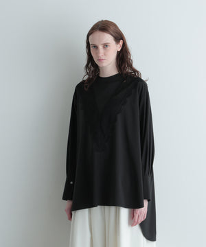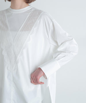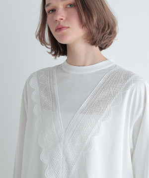 程よい透け感のレースを贅沢に切り替えた、軽やかなムードのブラウス。