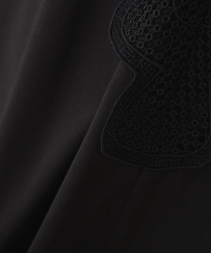 レースパネルが縦のラインを強調し、着るだけですっきりとしたIラインを演出。動きに合わせてレースがほのかに揺れ、春らしい軽さがプラスされます。