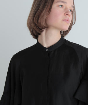 フェミニンな雰囲気ですが、スタンドカラーなので甘すぎないです。