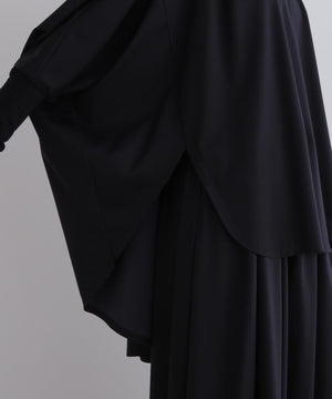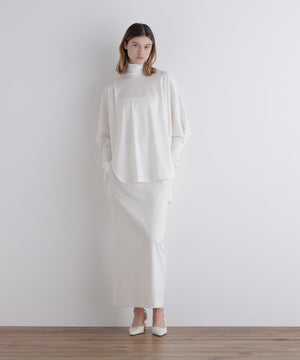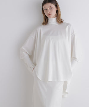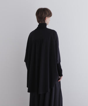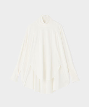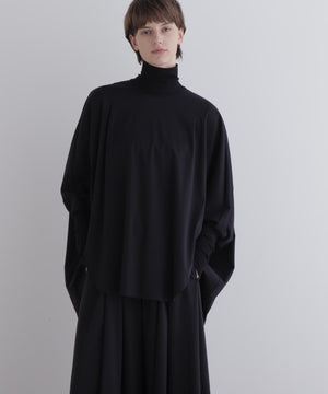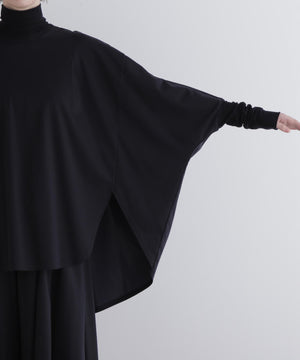 ハリ感と伸縮性を兼ね備えたコンパクトポンチ素材を使用した、ポンチョライクなブラウス。