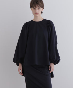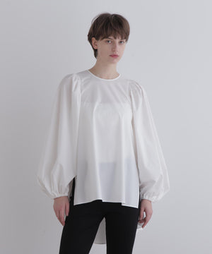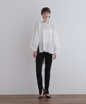 繊細な設計と構築的なフォルムが際立つ、モードな印象のブラウス。