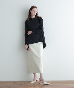 着心地の良いストレッチの効いたポンチ素材を使用したフレアーブラウスです。