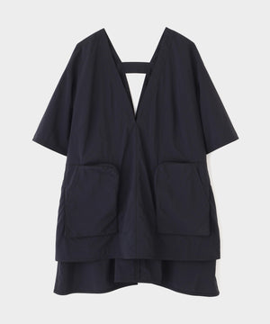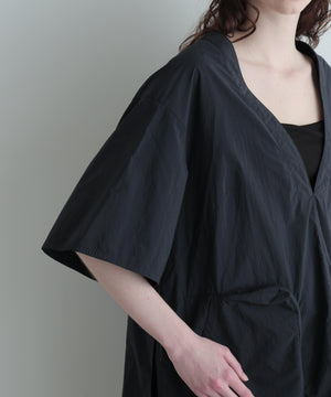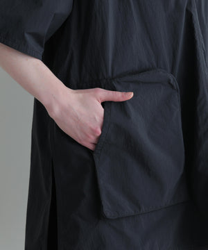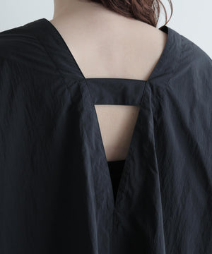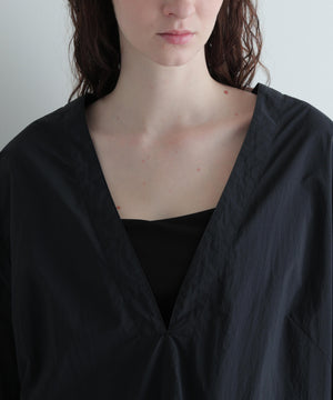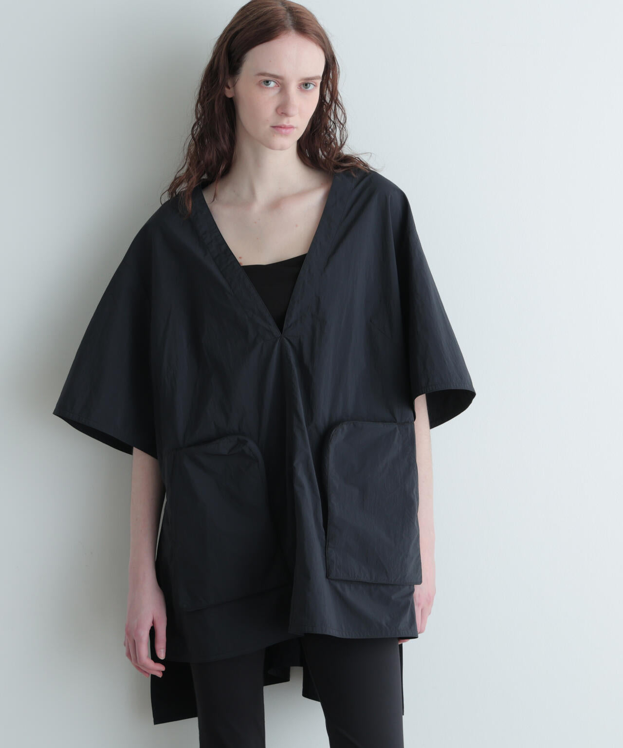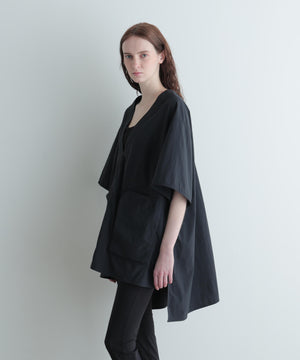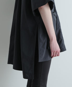 布帛ならではのハリとクリーンな表面感が、カジュアルになりがちなTシャツ型をぐっと洗練された印象に仕上げています。