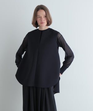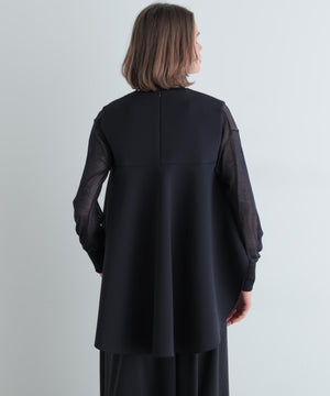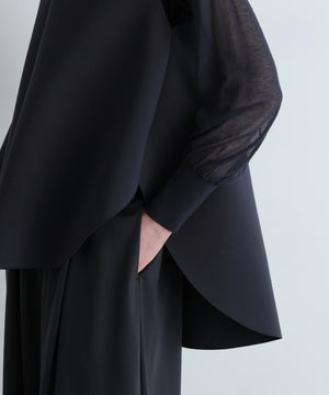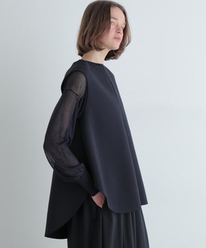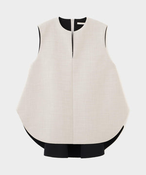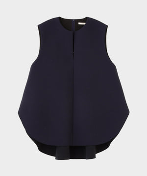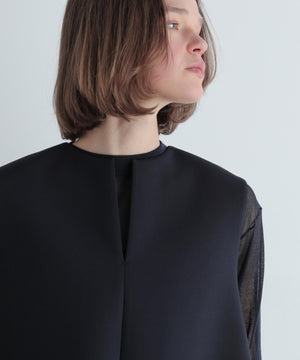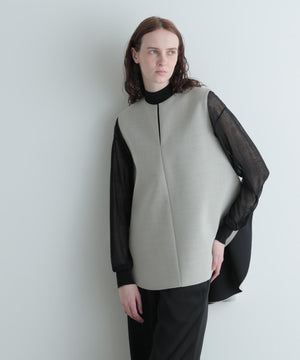 ボンディング素材特有の立体感を活かし、流れるようなラインとシルエットにこだわったジレ。