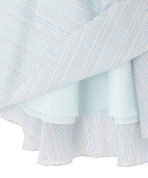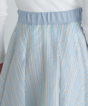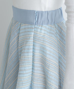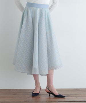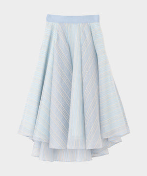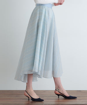 山形のジャカード産地で別注した、ナイロンのシアーストライプ素材を贅沢に使用したタックスカート。
