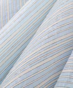 縦に透明感のあるナイロン糸を使用し緯糸にコットンとキュプラ糸でボーダー柄にした素材をヨコ地取りでストライプ柄で使用しています。